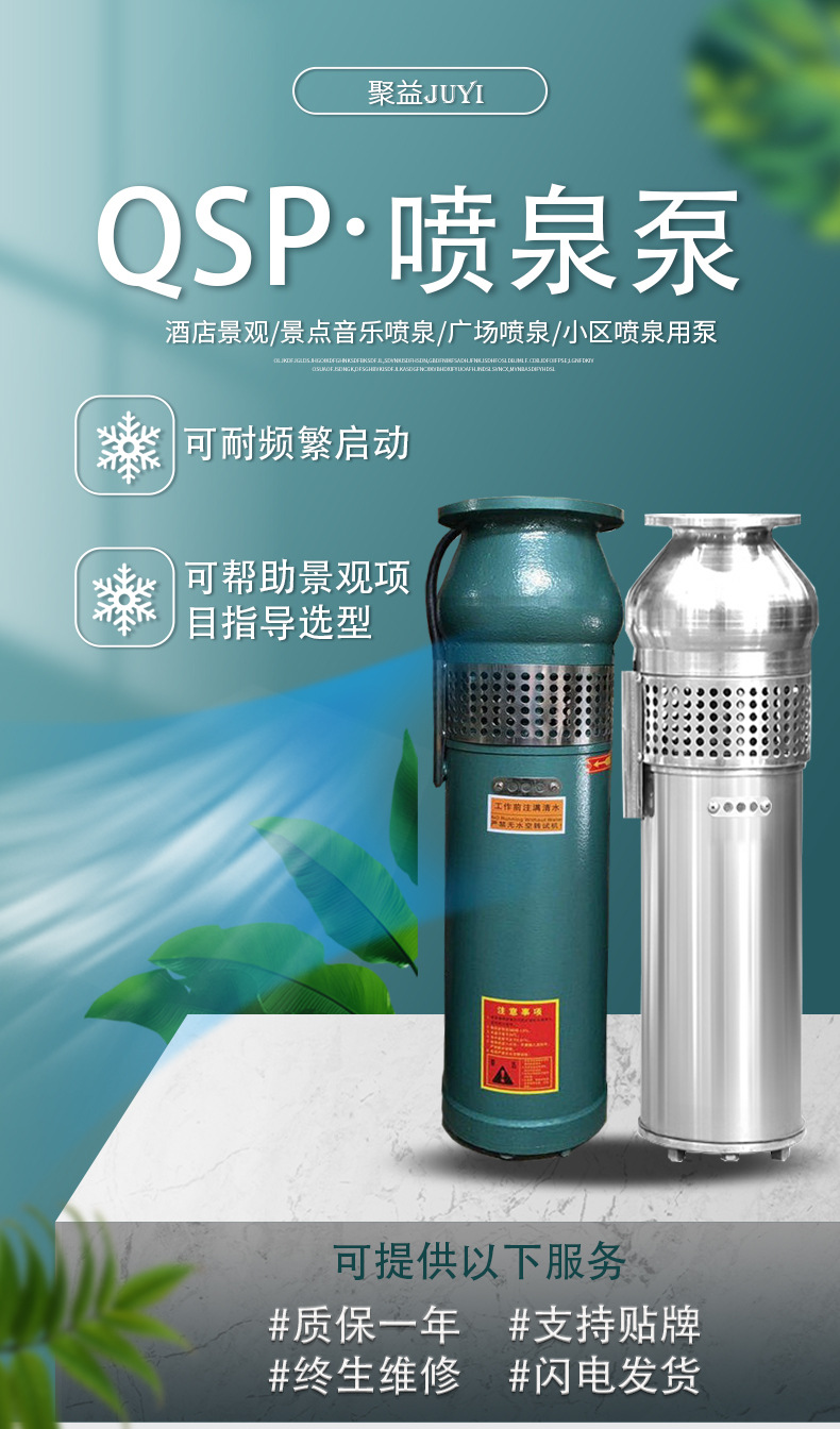 詳細信息 品牌JUE/聚以 型號QSP25-17-2.2 材質鑄鐵 性能衛生 用途潛水泵 驅動方式電動 輸送介質清水泵 泵軸位置邊立式 葉輪結構封閉式葉輪 葉輪吸入方式單吸式 流量25(m3/h) 葉輪數目1 揚程17(m) 汽蝕余量0.5(m) 吸入口徑50(mm) 排出口徑65(mm) 結構原理噴射泵 級數單級 重量30(kg) 電壓380(V) 功率2.2(kw)