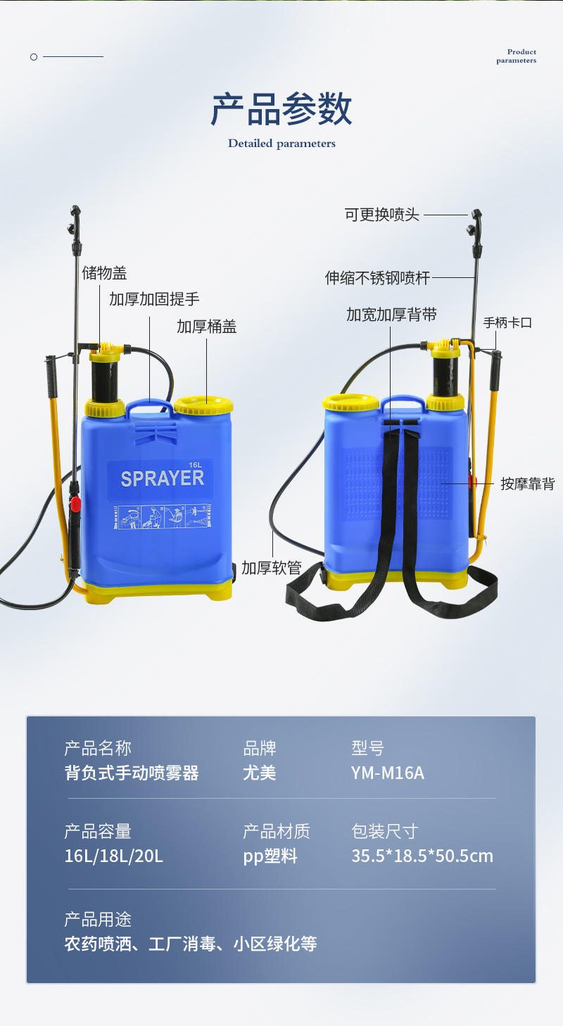 外貿手動噴霧器批發農用菜園果園16L背負式打藥桶消毒農藥打藥機