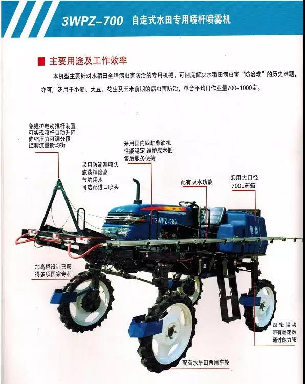 本機型主要針對水稻田全程病蟲害防治的專用機械,可徹底解決水稻田病蟲害“防治難”的歷史難題,亦可廣泛用于小麥、大豆、花生及玉米前期的病蟲害防治,單臺平均日作業量700-1000畝。