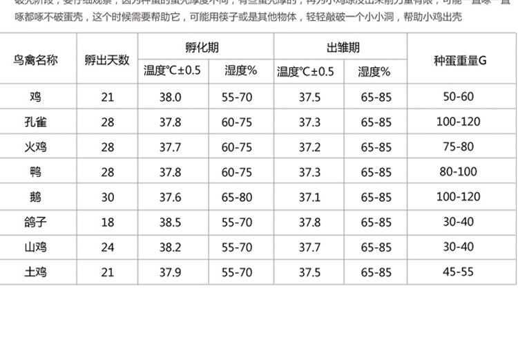 詳細信息 訂貨號48枚單/雙電源 加工定制是 貨號48枚單/雙電源 適用對象雞,鴨,鵪鶉,鴿 用途孵化設備 品牌HHD 型號48枚單/雙電源 外型尺寸- 包裝說明紙盒包裝 控溫范圍- 類型孵化器 產品類型全新 售后服務一年保修 產品規格單電源(220V/110V),雙電源(220V 12V) 主要下游平臺ebay,亞馬遜,wish,速賣通,獨立站,LAZADA 主要銷售地區非洲,歐洲,南美,東南亞,北美,東北亞,中東 有可授權的自有品牌是 是否跨境出口專供貨源是