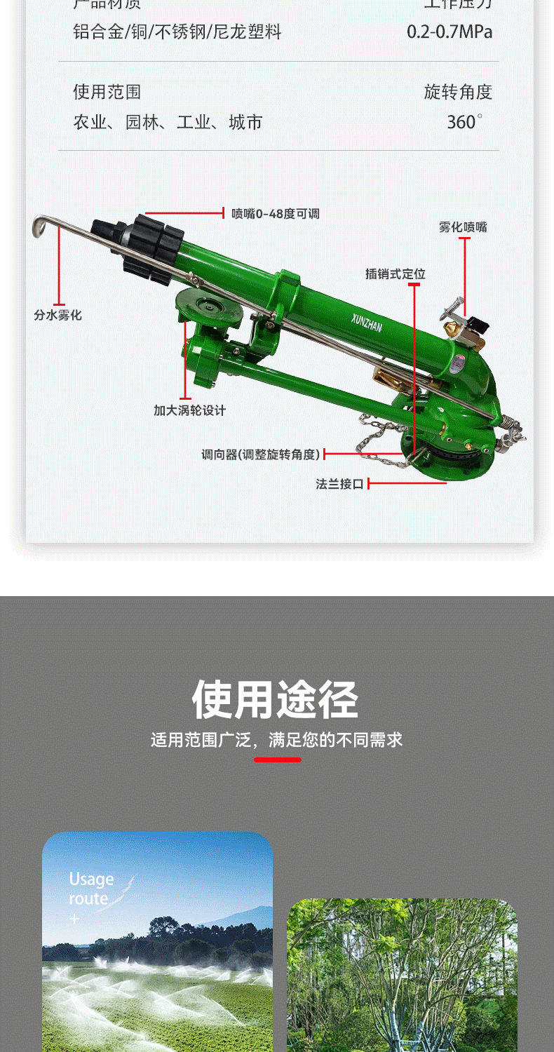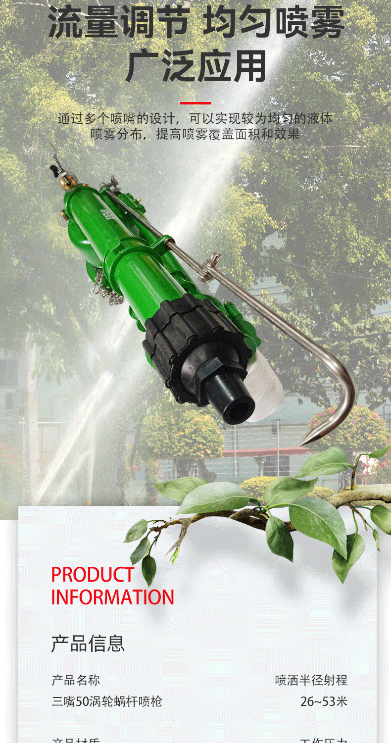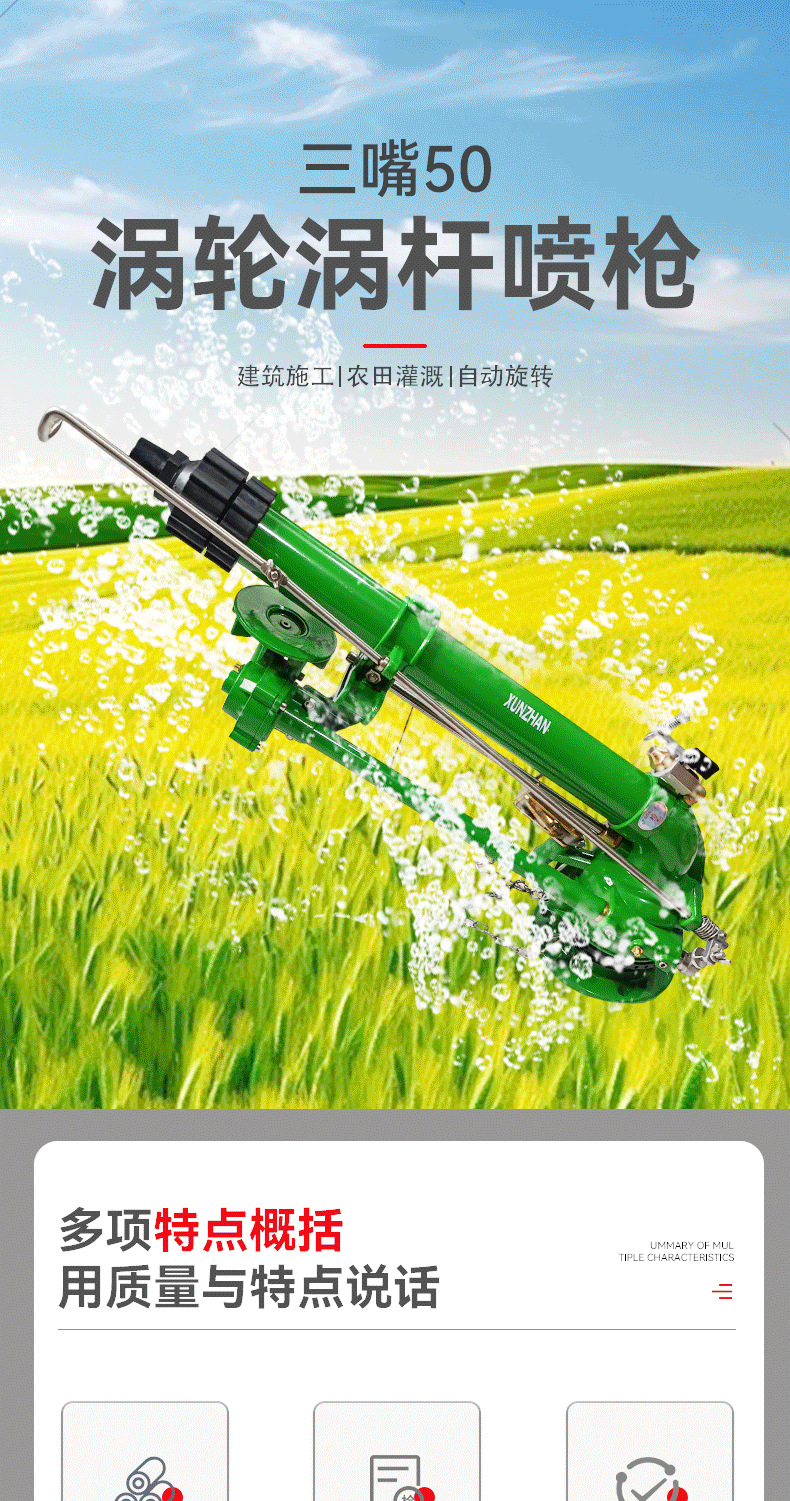 三嘴50渦輪蝸桿噴槍仰角可調(diào)高霧化噴槍360自動旋轉(zhuǎn)農(nóng)田除塵灌溉