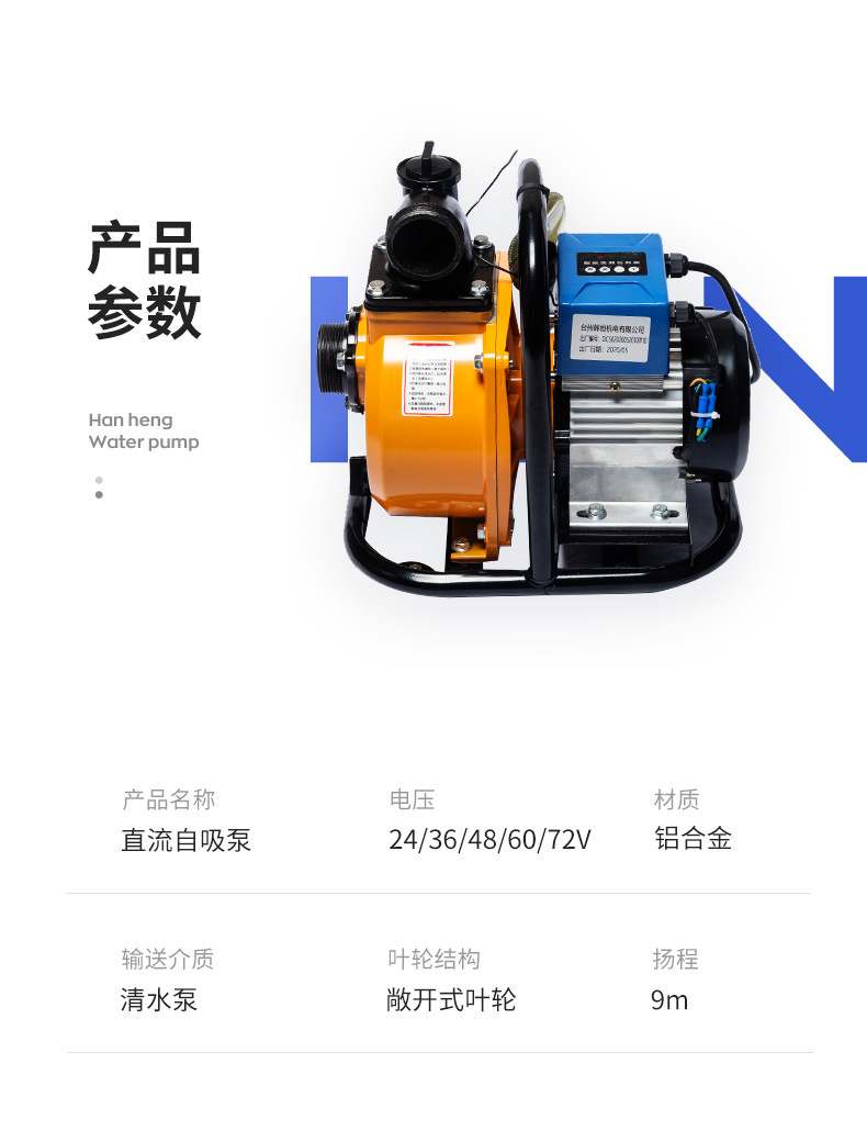 24/48/60/72V無刷變頻直流自吸泵電瓶車農(nóng)用大流量灌溉抽水泵