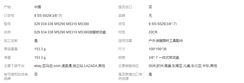029 034 036 MS290 MS310 MS390 油鋸用3/8"-7 一體式被動盤園林