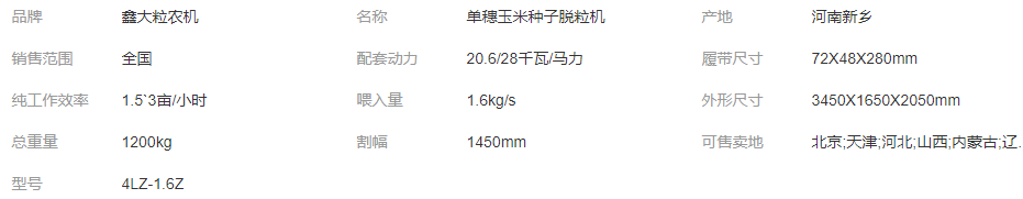 單穗玉米種子脫粒機為麥稻及谷子,高粱等作物,穗系、株系、品比圃、原種小區選育良種用的半喂入式氣流清選脫粒機。它將把你試驗的品種準確無誤的實驗結果提供給你。且動力消耗少、產品高、抗混雜。配用汽油發動機可野外工作、操作容易、舒適、安全。深受廣大科研單位的青睞,遠銷全國各大科研單位。配用動力;電機Y100-6-1.5瓦380V220V生產率;100-150公斤/時(作物含水率15-18%時)破碎率;≤0.2%總損失;≤1.5%殘留量;0清機時間;≤3秒(機械氣流,輔以人工)