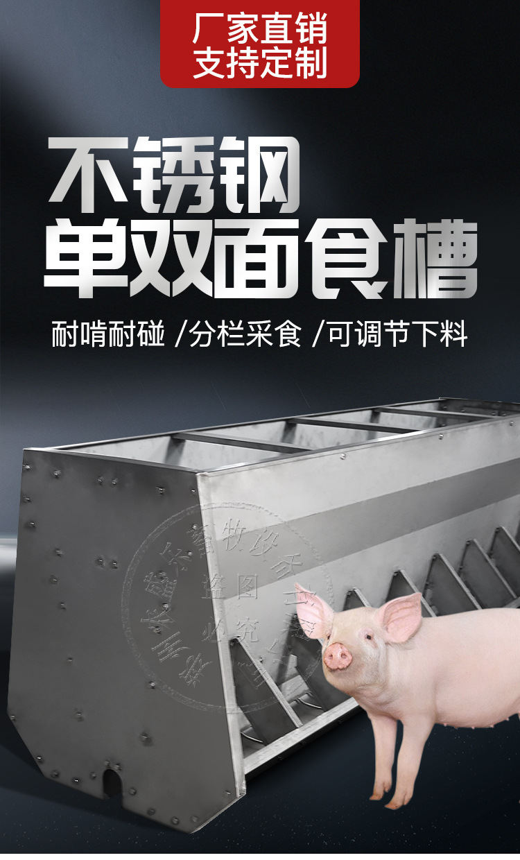 廠家直銷不銹鋼單雙面食槽保育育肥豬自動(dòng)撥料分欄喂食料槽可安裝