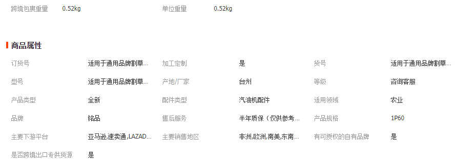 主營: 農機配件 發電機零部件