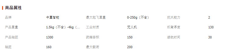 植保無人機產品參數:
