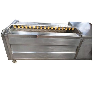 毛刷清洗機適用于土豆、蘿卜、紅薯、芋頭等各種根莖類蔬菜和水果以及藥材等物料的清洗。去皮、去泥沙、去毛發等整機采用304不銹鋼和食品級毛刷,利用旋轉毛刷配高壓噴淋,能徹底的清洗果蔬表面的污垢。該設備容積大、效率高、節約水,可連續清洗,操作簡單,使用壽命長等。使果蔬清洗去皮的首選設備。