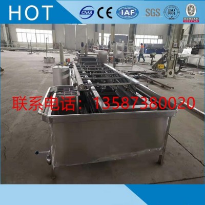 1、設備除電機、軸承等標準件外均采用不銹鋼SUS304材料制作,符合出口食品衛生要求。設備中設有氣泡發生裝置,使物料呈翻滾狀態,去除產品表面農殘的功效,同時可加入適量的藥劑,進行消毒固色。漂浮物可以從溢流槽溢出,沉淀物從排污口排出,以達到清洗的目的。該設備在氣泡、沖浪、提升、噴淋等聯合工作下,具有洗潔凈高、節能、節水、設備穩定可靠能保持原有色澤等特點。是蔬菜、食品加工、餐飲等行業的理想設備。