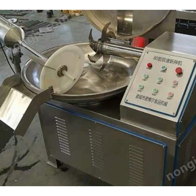 斬拌機利用斬刀高速旋轉的斬切作用,將肉及輔料斬成肉餡或肉泥,還可以將輔料、、水與肉餡或肉塊一起攪拌均勻。我公司生產的斬拌機刀速、鍋速、斬刀與斬鍋的間隙、斬刀材質和斬刀刀刃硬度等設計為組合,工藝精良,可以使肉制品物料的斬切細度好、升溫程度小、斬拌時間短,提高了肉制品的乳化效果、彈性、細膩度及出品率。根據不同用戶的需要,我公司的斬拌機系列型號齊全、操作簡便。