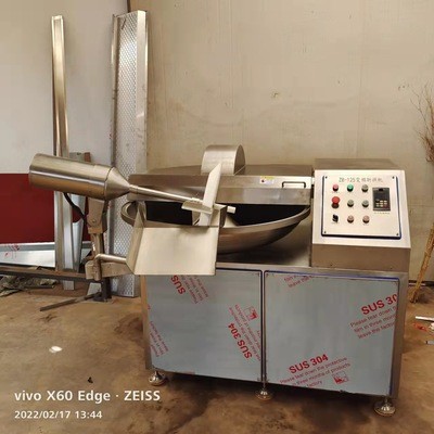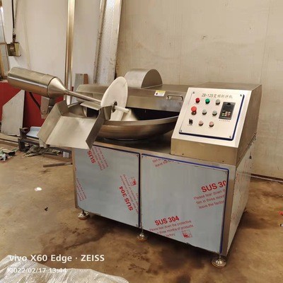 斬拌機是肉類制品、肉糜狀產品(火腿腸、烤腸、蒜味腸、水餃、水產加工等)生產制作過程中的一個關鍵設備。它不僅能夠將肉塊、碎肉、脂肪等主要原材料精細的切碎,還能同時將其它原料如水、冰屑、調料、附加品同肉沫一起攪拌成均勻的乳狀物。根據不同的要求選擇適當的轉速,可以大大縮短運行時間,減少物料發熱量,可以保持餡料的天然色澤和風味。