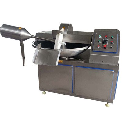 斬拌機利用斬刀高速旋轉的斬切作用,將物料及輔料斬成肉餡或肉泥。使物料的斬切時間短,溫升小,提高了物料的細膩度,可充分提取蛋白,使產品具有彈性強、乳化結果好、出品率高等特點。