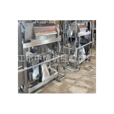 工作原理:破碎后的果肉、汁、皮通過進(jìn)料斗進(jìn)入雙螺旋榨汁機(jī),由于螺旋沿著料渣出口方向底徑逐漸加大而螺距逐漸減少,當(dāng)物料被螺旋推進(jìn)時(shí),因螺旋腔體積縮小,形成對物料的壓榨。螺旋主軸的轉(zhuǎn)動(dòng)方向從進(jìn)料斗向渣槽方向看去,為逆時(shí)針方向。原料加入進(jìn)料斗中,在螺旋的推進(jìn)下受壓,其壓榨的汁液通過過濾網(wǎng)流入底部的盛汁器,而廢料則通過螺旋及調(diào)壓的錐形部分之間形成的環(huán)狀空隙排出,調(diào)壓頭沿軸向的移動(dòng)并直接受液壓系統(tǒng)控制。調(diào)節(jié)液壓系統(tǒng)的壓力,即調(diào)整排渣的阻力,即可改變出汁率,但如果液壓系統(tǒng)壓力過大,在強(qiáng)力擠壓下,部分渣的顆粒會(huì)和汁一起通過過濾網(wǎng)被擠出,盡管出汁增加,但汁的質(zhì)量相對下降,液壓系統(tǒng)壓力的大小應(yīng)視用戶具體工藝要求而定。從而達(dá)到汁與渣自動(dòng)分離的目的。
