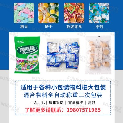 裝。通過提升機把小袋物料提升至自動計包裝置中后,電腦自動組合所設定的數量,通過包裝機自動