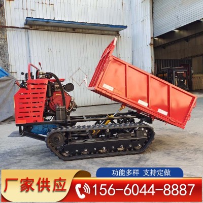 全地形履帶運輸車果園運輸自卸車車工地運料工程車履帶式拖拉機與輪式拖拉機不同,它是通過一條卷繞的環形履帶支承在地面上。履帶接觸地面,履刺插入土內,驅動輪不接地。驅動輪在驅動扭矩的作用下,通過驅動輪上的輪齒和履帶板節銷之間的嚙合連續不斷地把履帶從后方卷起。