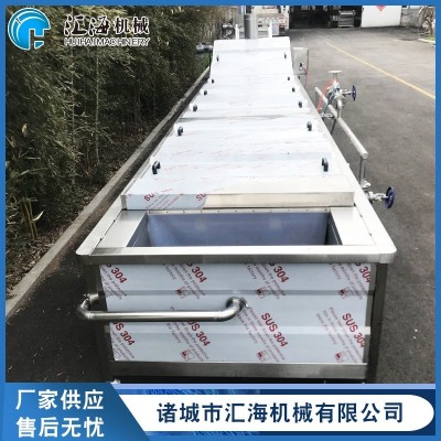 (果蔬漂燙殺青)巴氏殺菌機(jī)特點(diǎn):本機(jī)以熱水為介質(zhì),整體采用不銹鋼制作,無極變頻調(diào)速、噪音低、運(yùn)行平穩(wěn),可根據(jù)產(chǎn)品的要求對(duì)溫度和時(shí)間進(jìn)行任意調(diào)整。該機(jī)結(jié)構(gòu)緊湊、操作方便、故障率低,加熱方式采用鍋爐蒸汽、鍋爐熱水加熱,特別適合連續(xù)蒸煮作業(yè)。設(shè)備采用手自控溫系統(tǒng),水質(zhì)升溫快、受熱均勻、溫差小、溫度可調(diào),水浴式巴氏殺菌功能可有效的將物料均衡的混合在介質(zhì)水中,提供了對(duì)物品的(果蔬漂燙殺青)巴氏殺菌,更有效地對(duì)產(chǎn)品進(jìn)行護(hù)色處理,雙層網(wǎng)帶式設(shè)計(jì)可將物料全部壓制在水中,避免物料因浮力造成的漂燙不徹底。設(shè)備帶有機(jī)械提升臂可以把整個(gè)槽體提升起來便于網(wǎng)帶底部和設(shè)備的清洗。上蓋處帶有水密封裝置,可以避免蒸汽在間隙間泄露。可調(diào)速式輸送系統(tǒng)可有效的控制產(chǎn)品的(果蔬漂燙殺青)巴氏殺菌時(shí)間,合格的完成產(chǎn)品的連續(xù)(果蔬漂燙殺青)巴氏殺菌工藝。