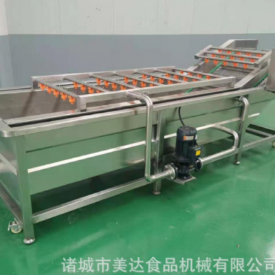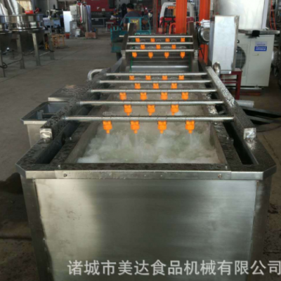 氣泡清洗機(jī)是大棗,蔬菜,水產(chǎn)生產(chǎn)線中的重要產(chǎn)品,主要用于大棗,蔬菜,水產(chǎn)的清洗。氣泡清洗機(jī)的原理主要是利用箱體前部分設(shè)備箱體中注適量的水,經(jīng)過加熱管將水溫加熱,原料在經(jīng)過箱體時(shí),會(huì)與氣泡機(jī)和水的結(jié)合作用下做翻滾狀態(tài),并隨網(wǎng)帶不斷向前推進(jìn),在出水面時(shí),高端設(shè)有噴淋頭,高壓沖洗。 果蔬氣泡清洗機(jī)特點(diǎn):