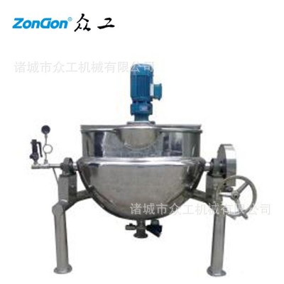 電加熱夾層鍋主要由鍋體和支架組成,鍋體是由內外形鍋體組成的雙層結構形式,中間夾層加入導熱油或水。電加熱夾層鍋以380V電力為熱源,夾層鍋內裝電熱棒、電熱偶及導熱油(自配),高可以達到320度,有電控箱控制,內部配備溫度控制系統。電加熱夾層鍋具有受熱面積大,加熱均勻、熱效率高,液體沸騰時間短,加熱溫度容易控制等。