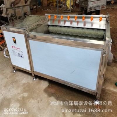 該機(jī)具有外形美觀和操作方便,清洗脫皮容積大、效率高,耗能小,可連續(xù)清洗,操作簡(jiǎn)單,使用壽命長(zhǎng)等特點(diǎn),清洗棍為經(jīng)特殊工藝處理的尼龍線繩軋制材料,脫皮為加硬材料,兩者皆經(jīng)久耐用,耐磨性能相當(dāng)好。全機(jī)采用優(yōu)質(zhì)不銹鋼材質(zhì),旋轉(zhuǎn)出料,不銹蝕、清潔衛(wèi)生。也可在機(jī)器底部加裝廢料收集盤(pán),防止污水皮屑等污染地面。
