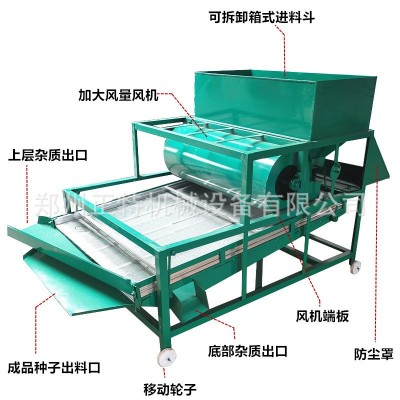 用于清除糧食或油料種子里面的各種雜質(zhì)和塵土。如灰塵、碎屑、壞糧及小石子、葉、糠殼、塵土及癟糧等雜質(zhì),集風(fēng)選和篩分為一體。