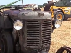 使用老式拖拉機翻麥地